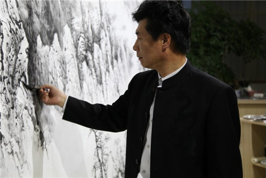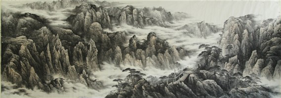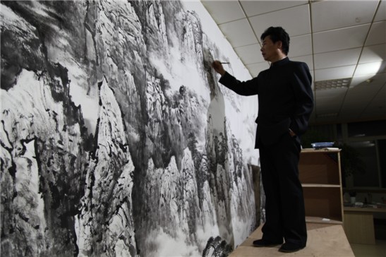 我院院长张鸿远先生受广州市金宏利投资集团董事长卢炼先生邀请,创作3M×8M巨幅山水画作品,目前以黄山为题材的作品已接近尾声。